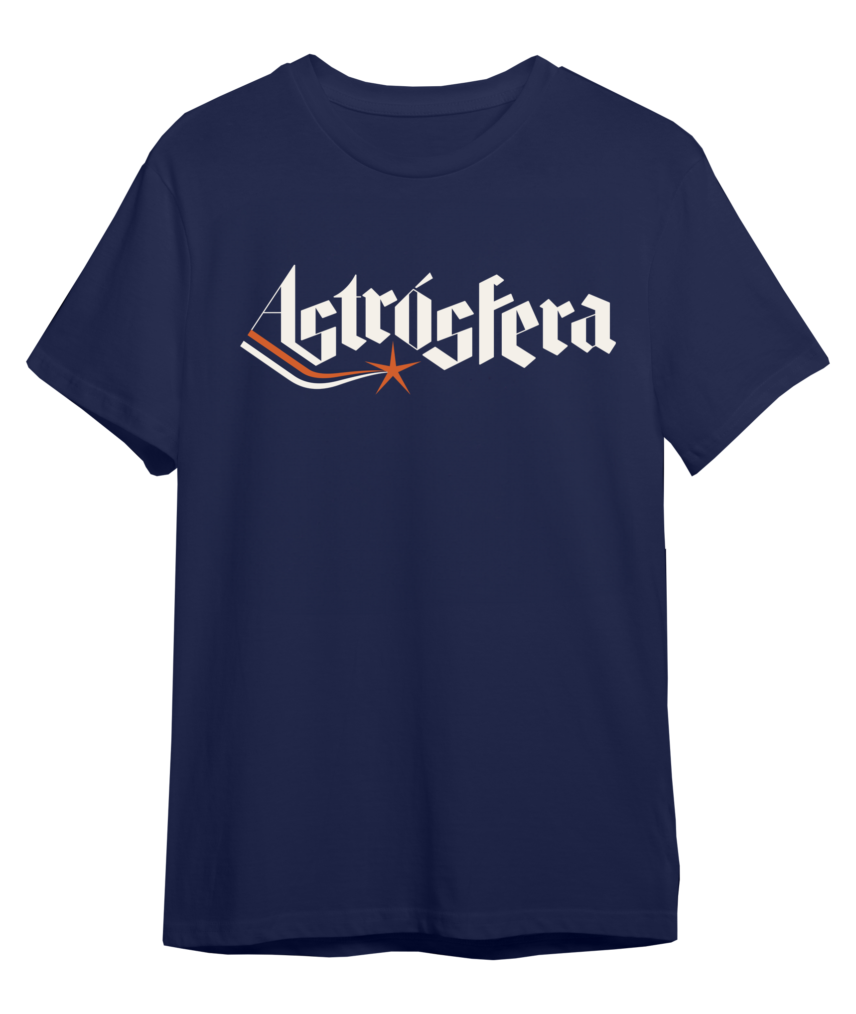 Playera azul marino con el logotipo oficial de Astrósfera al frente. Estilo limpio, tipografía galáctica y toque retro. Ideal para fans del proyecto.
