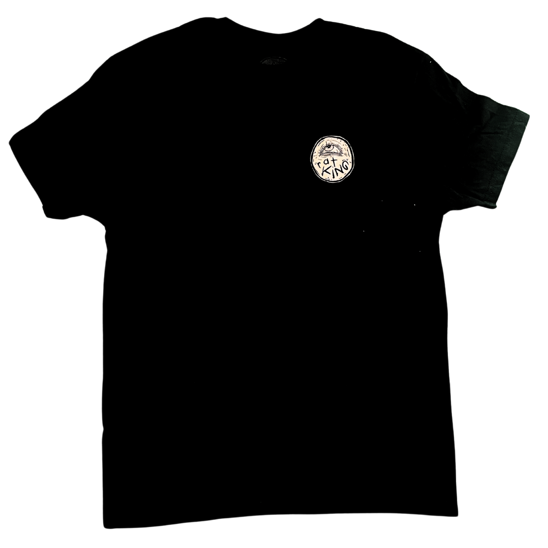 Playera negra unisex con ilustración de ojo al frente y arte gráfico al reverso. Inspirada en la estética cruda y simbólica de RatKing, esta pieza es un statement visual en cada detalle.