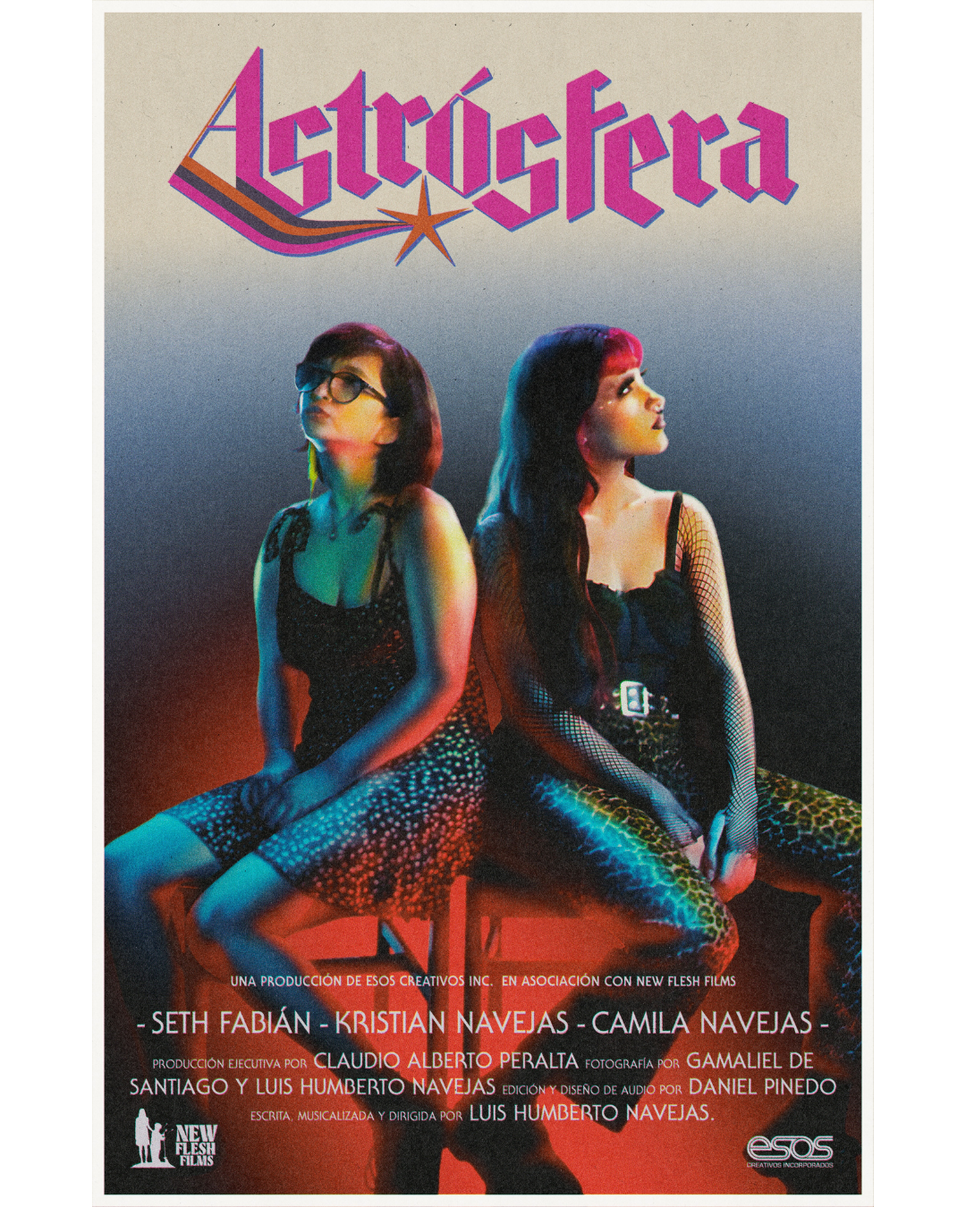Póster oficial de Astrósfera, la primera película escrita, dirigida y musicalizada por Luis Humberto Navejas. Una historia de ciencia ficción con estética retro-futurista que explora el tránsito hacia la adolescencia.